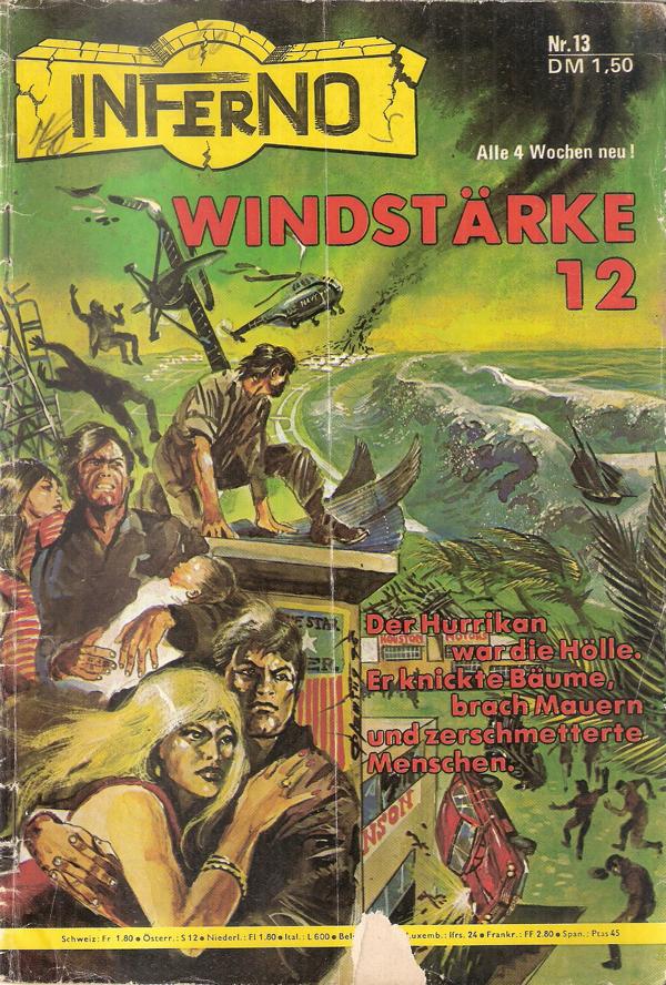 Inferno Nr. 13 Titel: Windstärke 12Autor: Peter FisherVerlag: Marken Verlag, KölnRomanheft, 64 SeitenFormat: 15,5 x 22,5 cmZustand: deutliche Gebrauchsspuren am Cover (beschädigt, eingerissen)