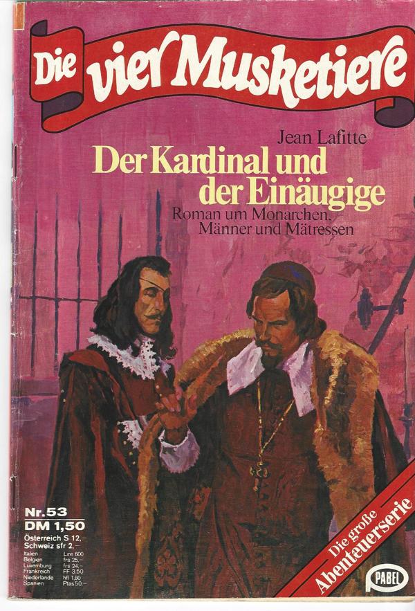 Die vier Musketiere Nr. 53 Roman um Monarchen, Männer und Mätressen Titel: Der kardinal und der Einäugige.Autor: Jean Laffitte Pabel Verlag Romanheft, 64 SeitenFormat: 15,5 cm x 22,5 cmZustand: gebraucht, gut