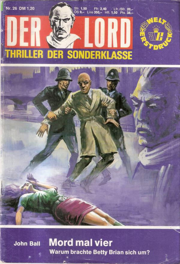 Der Lord Nr. 26 Autor: John Ball Titel: Mord mal vierVerlag: A. Eber Verlag, SasbachwaldenRomanheft, 60 SeitenFormat: 15,5 x 22,5 cmGewicht: 70 gZustand: leichtere Gebrauchsspuren