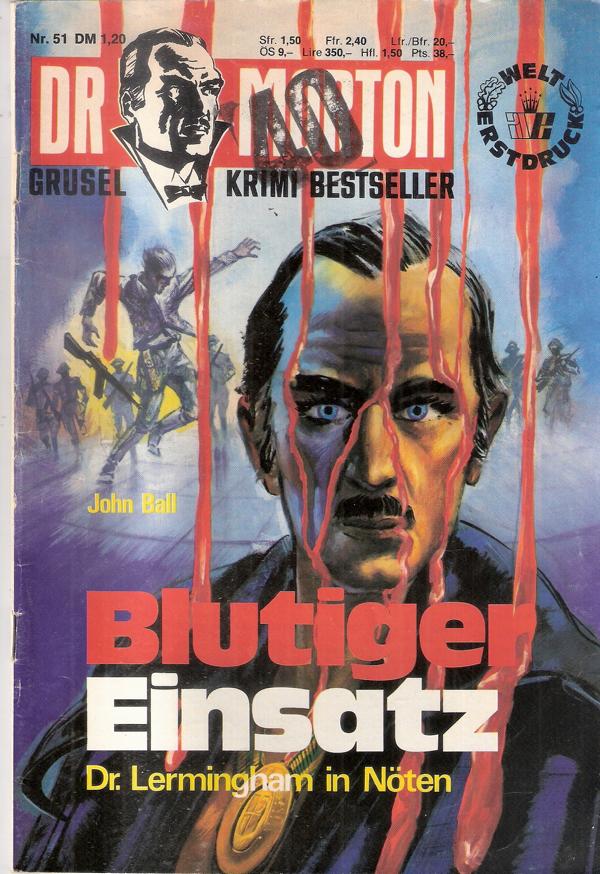 Dr. Moton Nr. 51Grusel Krimi BestsellerTitel: Blutiger EinsatzVerlag: A. Eber Verlag, SasbachwaldenRomanheft, 60 SeitenFormat: 15,5 x 22,5 cmGewicht: 70 gZustand: gut, leichte Gebrauchsspuren