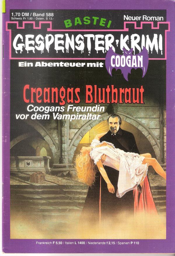 Gespenster Krimi Nr. 588Ein Abenteuer mit Coogan Titel: Coogans Blutbraut Coogans Freundin vor dem VampiraltarAutor: Damian Fox Bastei VerlagRomanheft 64 SeitenFormat: 15,5 x 22,5 cmGewicht: 71 gZustand: gebraucht, gut