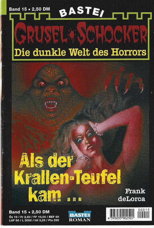 Grusel Schocker Nr. 15Die dunkle Welt des Horrors.Tirel: Als der Krallen-Teufel kam....von: Frank de LorcaVerlag: Bastei, Bergisch GladbachRomanheft 63 SeitenFormat: 15,5 x 22,5 cmZustand: sehr gut