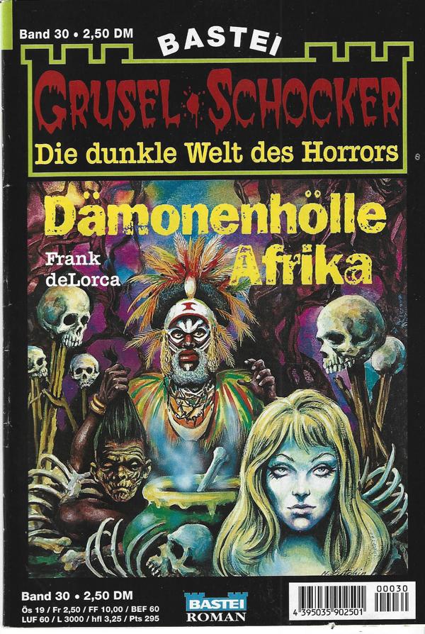 Grusel Schocker Nr. 30Die dunkle Welt des Horrors.Tirel: Dämonenhölle Afrika.von: Frank deLorcaVerlag: Bastei, Bergisch GladbachRomanheft 63 SeitenFormat: 15,5 x 22,5 cmZustand: sehr gut