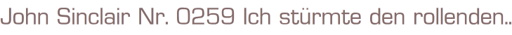 Geisterjäger John Sinclair Nr. 0259Titel: Ich stürmte den rollenden SargVerlag: Bastei-Verlag Bergisch GladbachRomanheft 64 SeitenFormat: 15,5 x 22,5 cm Gewicht: 75 gZustand: gut