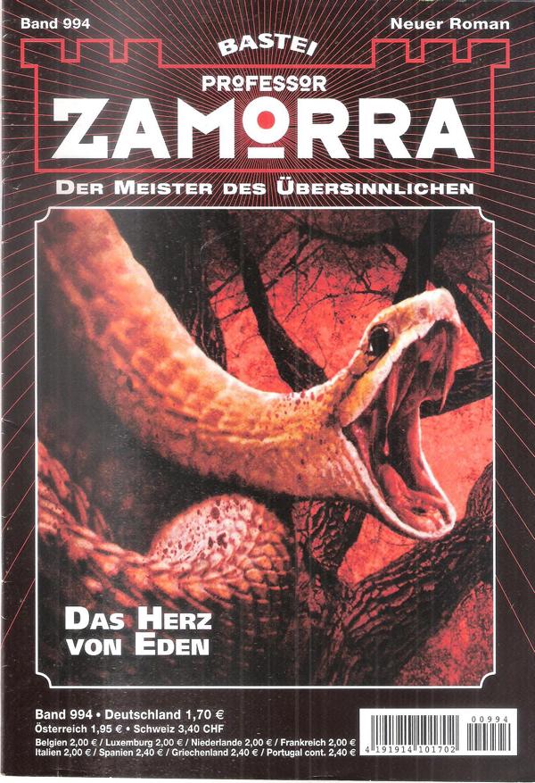 Professor Zamorra Nr. 0994Der Meister des ÜbersinnlichenTitel: Das Herz von EdenAutor: Adrian DoyleVerlag: Bastei Lübbe, Köln 2012Romanheft 64 Seiten Format: 22,5 cm x 15 cmZustand: sehr gut