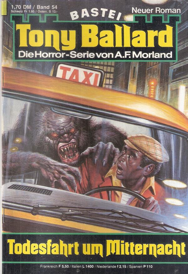 Tony Ballard Nr. 54Die Horrorserie von A. F. MorlandTitel: Todesfahrt um MitternachtBastei Verlag, Bergisch GladbachFormat: 22,5 cm x 15 cmZustand: sehr gut