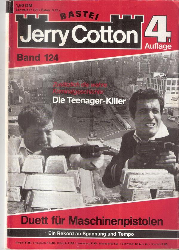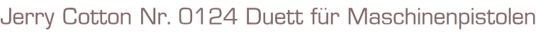 Jerry Cotton Nr. 0124 Duett für Maschinenpistolen4. AuflageBastei Verlag Romanheft 64 SeitenFormat: 15 x 22,5 cmGewicht: 73 gZustand: gut