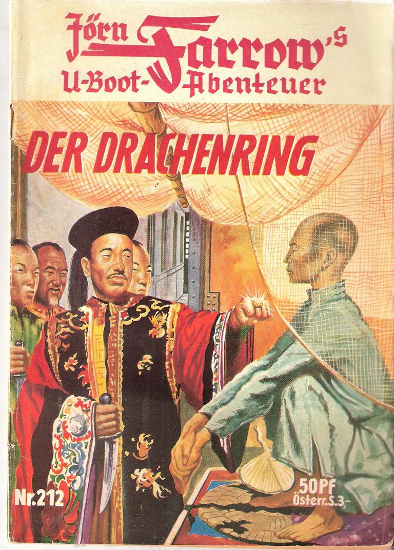 Jörn Farrow´s U-Boot-Abenteuer Nr. 212Titel: Der Drachenringnacherzählt von Hans WarrenVerlag: Neues Verlagshaus fürVolksliteratur GmbH 1959Romanheft 62 SeitenFormat: 15 x 21 cmGewicht: 49 gZustand: dem Alter entsprechend guter ZustandRomanhefte