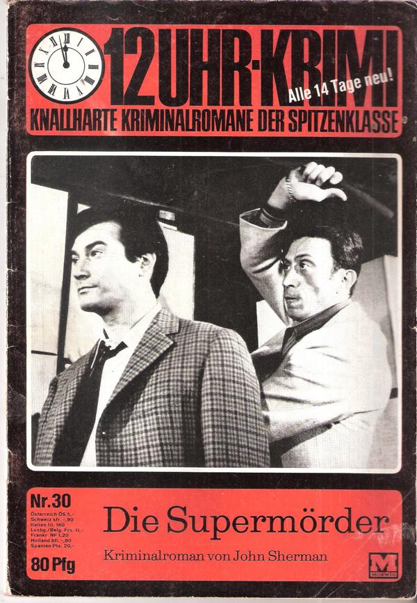 12 Uhr-Krimi Nr. 30Knallharte Kriminalromane der SpitzenklasseTitel: Die SupermörderAutor: John ShermanVerlag: Moewig-VerlagRomanheft 64 SeitenFormat: 15,5 cm x 22,5 cm Gewicht: 70 gZustand: gebraucht, gut erhalten