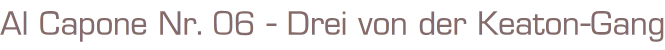 Al Capone Nr. 06FBI Agent Eliot Ness, der große Gegenspielervon Al CaponeTitel: Drei von der Keaton-GangAutor: Al CannVerlag: Kelter Verlag HamburgRomanheft, 65 SeitenFormat: 15 x 22,3 cmZustand: sehr gut