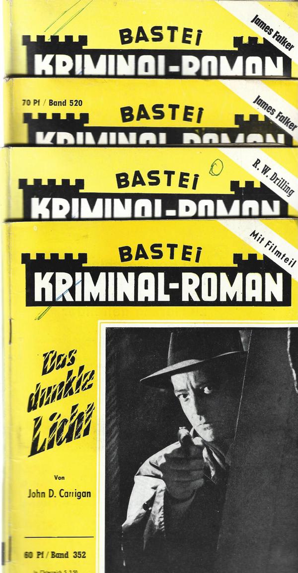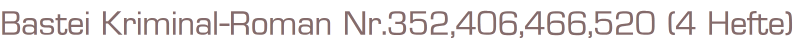 Bastei Kriminal-Roman Nr.352,406,466,520 (4 Hefte)Verlag: Bastei, Bergisch Gladbach 19584 Romanhefte á 66 SeitenFormat: 15,5 x 25,5 cmZustand: alle 4 Hefte in gutem Zustand
