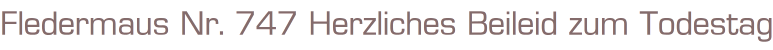 Fledermaus Nr. 747 Herzliches Beileid zum Todestag.Autor: James R. BurcetteVerlag: Erich Pabel, Rastatt 1973Romanheft, 66 SeitenFormat: 15,5 x 25,5 cmZustand: gebraucht, gut