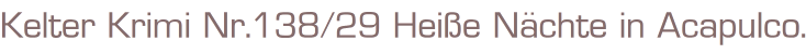 Kelter Krimi Nr.138/29 Heiße Nächte in Acapulco.Autor: Henry SeymourVerlag: Kelter Verlag, Hamburg 1968Romanheft 61 SeitenFormat: 15,5 x 25,5 cmZustand: sehr gut