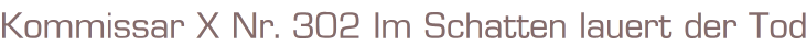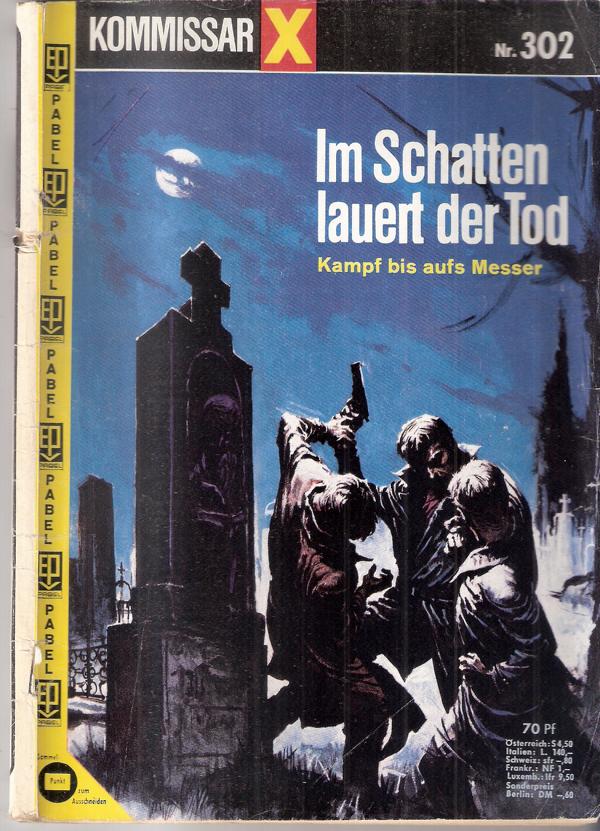 Kommissar X Nr. 302Titel: Im Schatten lauert der Tod Verlag: Pabel Verlag RastattRomanheft, 63 SeitenFormat: 15 x 22,3 cmGewicht: 72gZustand: mit Gebrauhsspuren, Papier vergilbtKrimi