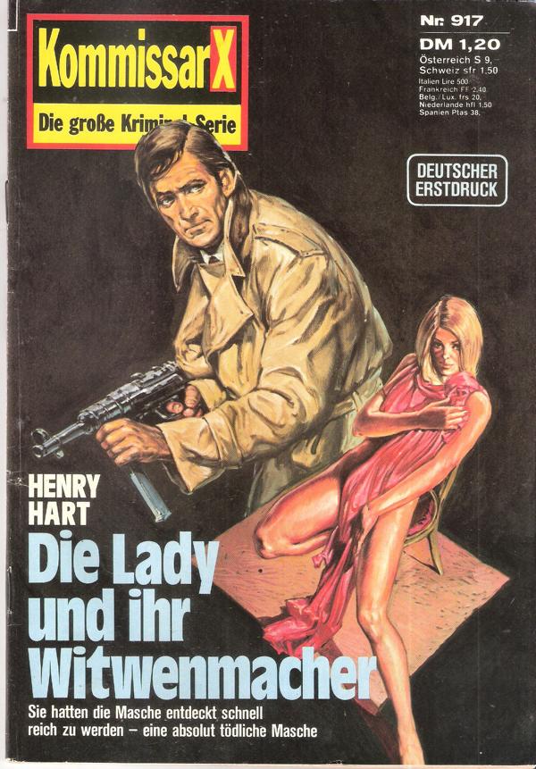 Kommisar X Titel: Die Lady und ihr WitwenmacherAutor: Henry HartVerlag: Pabel-VerlagRomanheft 64 SeitenFormat: 15,5 cm x 22,5 cm Gewicht: 70 gZustand: gebraucht, gut erhalten,letzte Seite fleckig