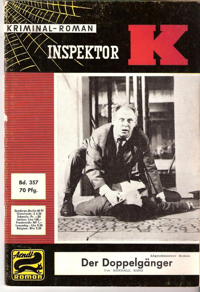Kriminal-Roman Inspektor KTitel: Der DoppelgängerAutor: Kendall KingVerlag: Erich Arndt-VerlagRomanheft 62 SeitenFormat: 15,5 cm x 22,5 cm Gewicht: 68 gZustand: Lager- und Gebrauchsspuren,