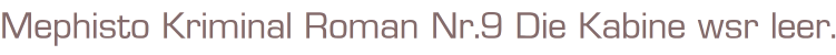 Mephisto Kriminal Roman Nr.9 Die Kabine wsr leer.Autor: Curt HellingVerlag: Neuzeit Verlag LandauRomanheft 64 SeitenFormat: 15,5 x 25,5 cmZustand: gut