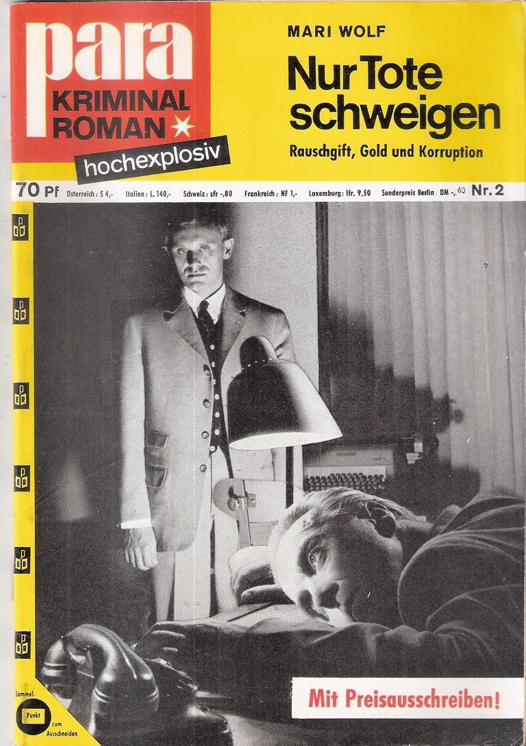 para Kriminal-Roman hochexplosivTitel: Nur Tote schweigenAutor: Mari WolfVerlag: Erich Pabel, RastattRomanheft, 64 SeitenFormat: 15 x 22,3 cmGewicht: 75gZustand: seht gut erhaltenes ExemplarKrimi