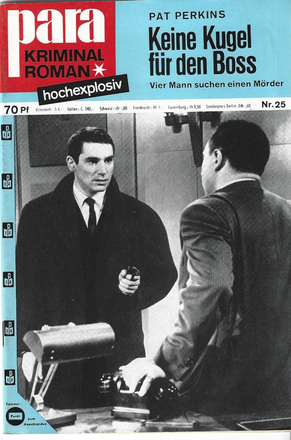 Para Kriminal Roman Nr.25 Keine Kugel für den Boss.Vier Mann suchen einen Mörder.Autor: Pat PerkinsVerlag: Erich Pabel RastattRomanheft 63 SeitenFormat: 15,5 x 25,5 cmZustand: sehr gut