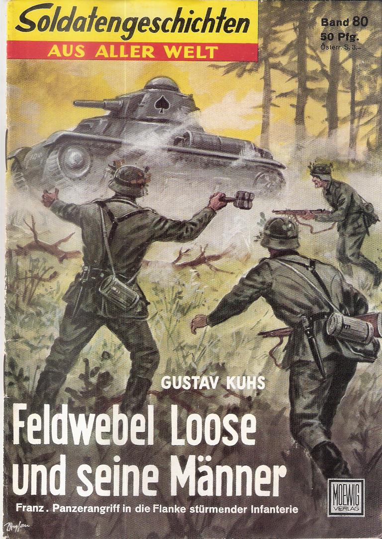 Titel: Feldwebel Loose und seine Männer.Französischer Panzerangriff un die Flanke stürmender InfanterieAutor: Gustav KuhsVerlag: Moewig MünchenRomanheft, 32 SeitenFormat: 14,5 x 21 cmGewichtz: 45 gZustand: gut