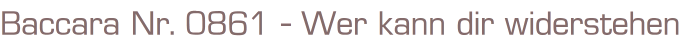 BACCARA Nr. 861 - Lust auf LeidenschaftTitel: Wer kann dir widerstehenAutor: Annette BroadrickCora Verlag 1995Heft, Format: 13 cm x 18 cmGewicht: 95 gZustand: leichte Gebrauchsspuren