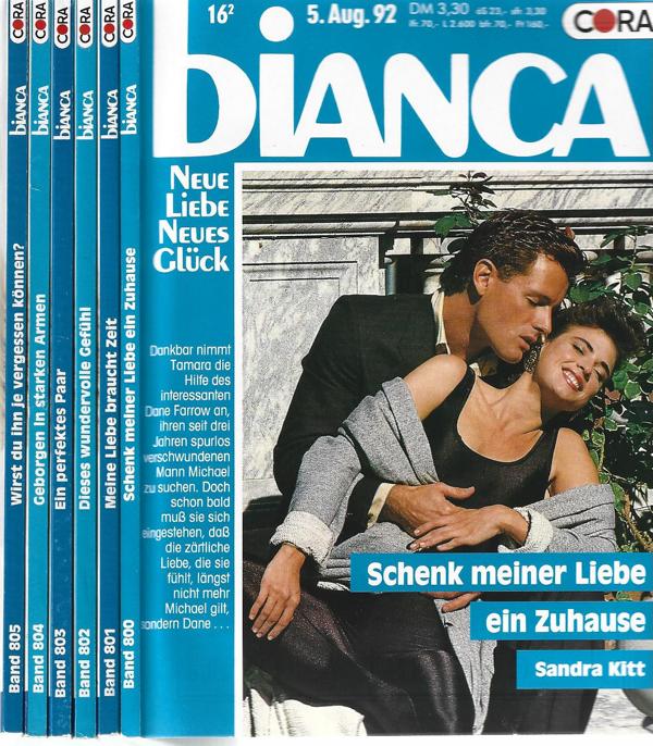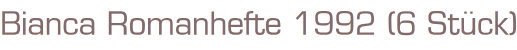 Bianca Romanhefte 1992 (6 Stück)Band Nr.: 800,801,802,803,804,805.Verlag: Cora, 1992 Berlin6 Romanhefte á 128 SeitenFormat: 13 x 18,3 x 0,5 cm x 6 StückZustand: sehr gut