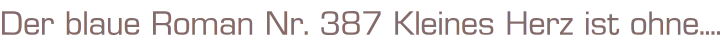 Der blaue Roman Nr. 387 Titel: Kleines Herz ist ohne Heimat.Autor: Ch, BerenzVerlag: Erich Arndt, HagenRomanheft 62 SeitenFormat: 15,5 x 22,5 cmZustand: sehr gut erhaltenes Exemplarmit altersbedingten Lagerspuren (Papier nachgedunkelt)