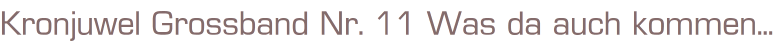 Kronjuwel Grossband Nr. 11 Titel: Was da auch kommen mag... Autor: Fee v. SteinVerlag: Hallberg Verlag, Feucht b. NürnbergRomanheft 64 SeitenFormat: 15,5 cm x 22,5 cmGewicht: 70 gZustand: gut