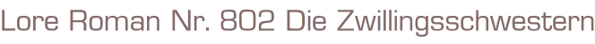Lore Romane Band 802Titel: Die ZwillingsschwesternAutor: Frederique HarmelVerlag: Marken Verlag, KölnRomanheft 66 SeitenFormat: 15,5 cm x 22,5 cmZustand: leichte Gebrauchsspuren