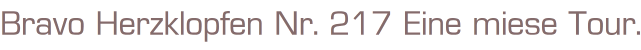 Bravo Herzklopfen Nr. 217Eine miese Tour.Verlag: Erich Pabel - Arthur MoewigRastatt (c) 1994Taschenbuch, 126 SeitenFormat: 13,5 x 18,2 x 0,5 cmZustand: gut