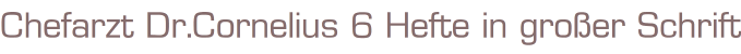 Chefarzt Dr.Cornelius 6 Hefte in großer SchriftNr. 70,41,162,20,608+28.Bastei Verlag6 Romanhefte á 64 SeitenFormat: 15 x 22 cmZustand: sehr gut
