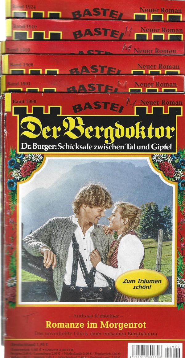 Der Bergdoktor 6 Romane in großer SchriftNr. 1900,1901,1906,1909,1910,1924.Bastei Verlag6 St. Romanhefte á 64 Seiten Format: 15 x 22 cm Zustand: leichte Gebrauchsspuren