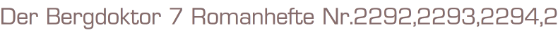 Der Bergdoktor 7 Romanhefte Nr.2292,2293,2294,2296,2297,2298 + 2299Bastei Verlag 7 Romanhefte á 62 SeitenFormar: 15 x 21,5 cm x 7 StückZustand: sehr gut