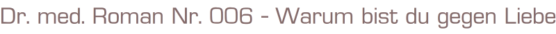 Dr. med. Roman Nr. 006 Warum bist du gegen Liebe?Autor: Bert AndreasVerlag: Neuzeit Verlag LandauRomanheft, 64 SeitenFormat: 15,5 x 22,5 cmGewicht: 73 gZustand: gut, leichte Gebrauchsspuren