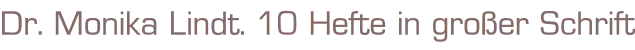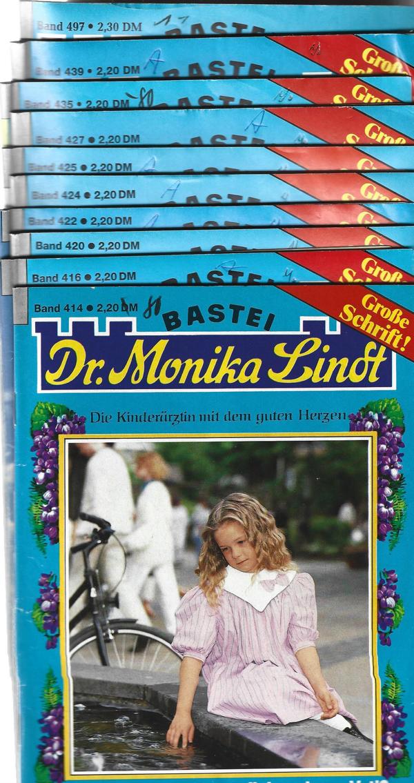 Dr. Monika Lindt. 10 Hefte in großer SchriftNr. 414,416,420,422,424,425,427,435,439,497.Autor: Karin GrafVerlag: Bastei Verlag Bergisch Gladbach10 St. Romanhefte á 64 Seiten Format: 15 x 22 cm x 10 HeftteZustand: sehr gut