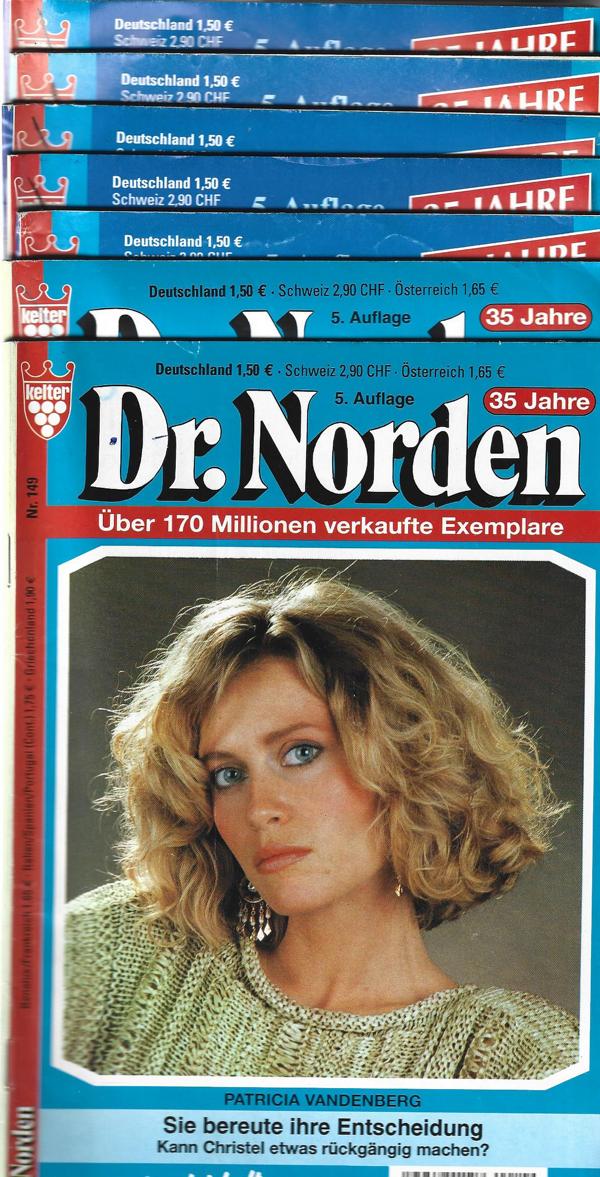 Dr. Norden. 7 Hefte in großer SchriftNr. 149,150,159,162,164,175,192.Autor: Patricia VandenbergKelter Verlag 5. Auflage7 Romanhefte á 64 SeitenFormat: 15,5 x 22,5 cmZustand: gebraucht, gut