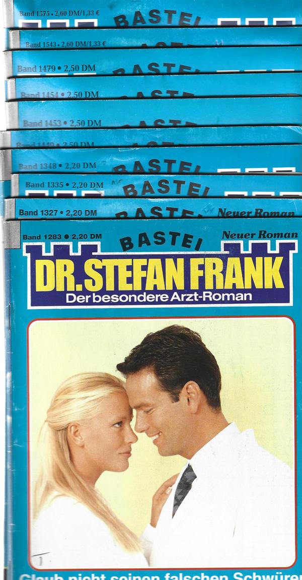 Dr. Stefan Frank 10 Hefte Der besondere Arzt-Roman Nr. 1283) Glaub nicht seinen falschen Schwüren. Nr. 1327) Jasmin - von ihrer Mutter verleugnet? Nr. 1335) Danielas Schickselstag. Nr. 1348) Abschiedsrosen. Nr. 1449) Der Mann Ihres Lebens. Nr. 2453) Verhängnisvolle Diagnose. Nr. 1454) Dr. Frank und die frau ohne Namen. Nr. 1479) Kleine gelähmte Ballerina. Nr. 1543) Die Schwester, die die Liebe leugnet. Nr, 1575) Zu schade für dein falsches Spiel
