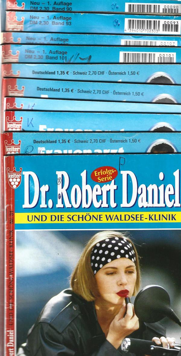 Dr. Robert Daniel 9 Hefte in großer SchriftNr. 31,7,4,8,5,101,107,93,90,Verlag: Marken Verlag, 9 Romanheft, je 64 SeitenFormat: 15 x 22,5 cm Zustand: gut, leichte Gebrauchsspuren