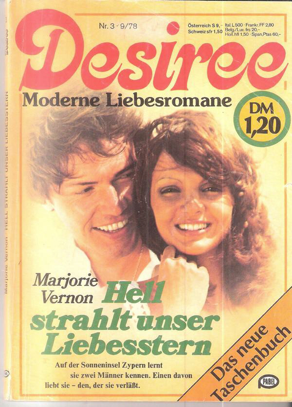 Desiree Moderne Liebesromane Band 3Titel: Hell strahlt unser LiebesnestAutor: Marjorie Vernon Verlag: Pabel 1978 Heft, Softcover, 126 Seiten Format: 13,5 cm x 19 cmGewicht: 100 gZustand: gut