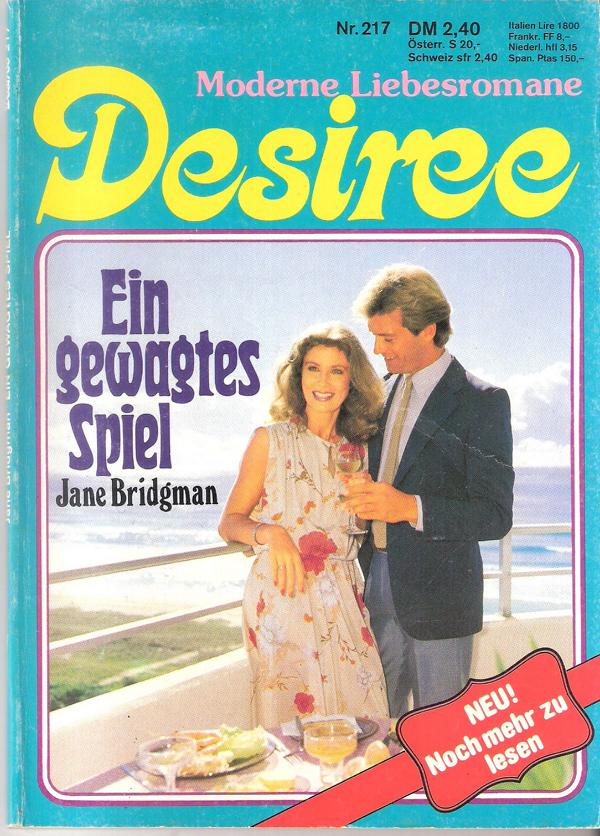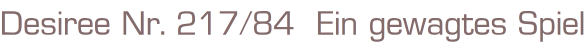 Desiree Moderne Liebesromane Band 217 Titel: Ein gewagtes Spiel Autor: Jane Bridgman Verlag: Pabel 1984 Heft, Softcover, 126 Seiten Format: 13,5 cm x 19 cmGewicht: 95 gZustand: gebraucht, gut