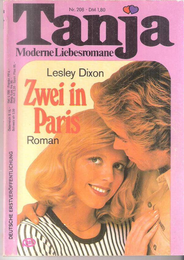 Tanja Moderne Liebesromane Nr. 208Titel: Zwei in ParisAutor: Lesley DixonVerlag: Pabel 1977 Heft, Softcover, 128 Seiten Format: 13,5 cm x 19 cmZustand: gebraucht, gut