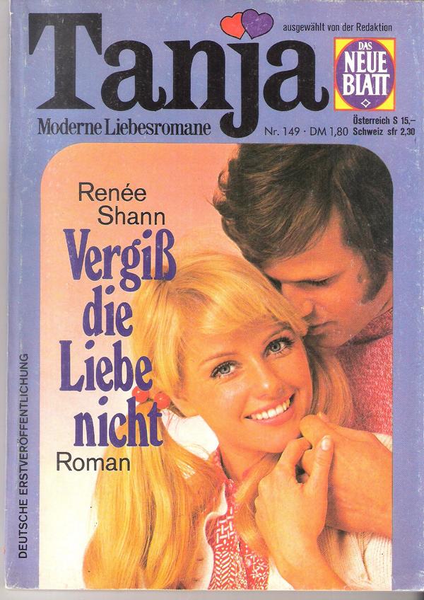 Tanja Moderne Liebesromane Nr. 149Titel: Vergiß die Liebe nicht Autor: Renèe Shann Verlag: Pabel 1976 Heft, Softcover, 127 Seiten Format: 13,5 cm x 19 cmGewicht: 102 gZustand: gebraucht, gut