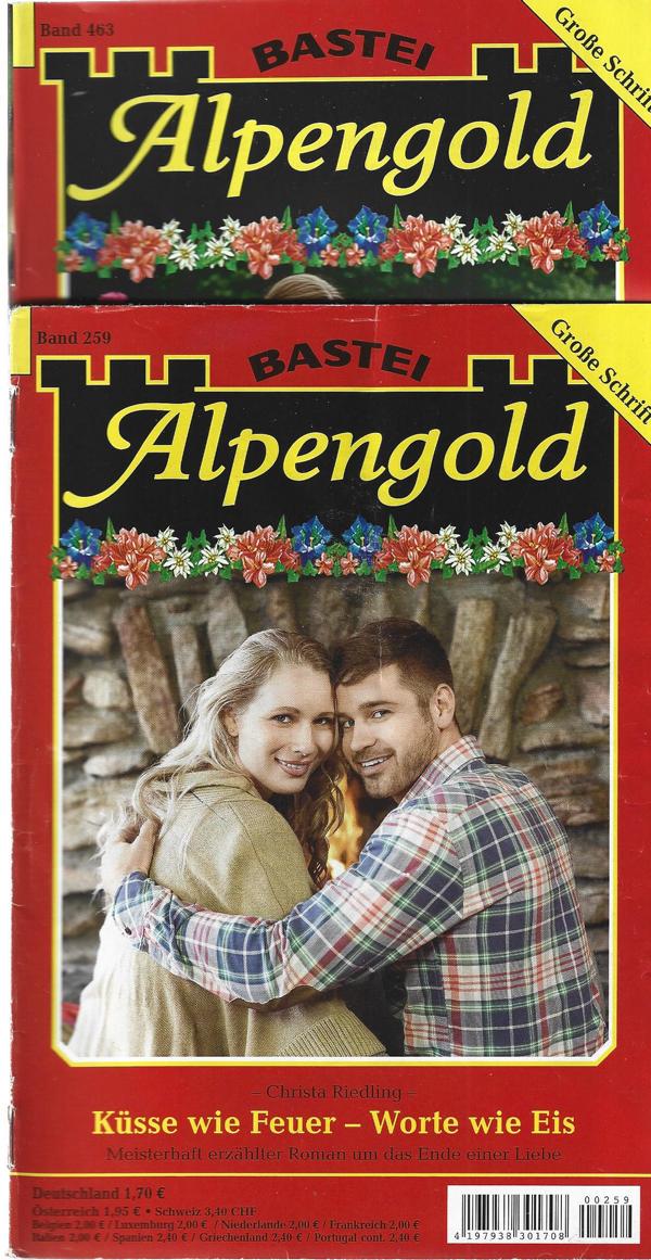 Alpengold Nr. 259 + 463 Große Schrift259) Küsse wie Feuer - Worte wie eis.463) Es geschah in Rosenbrunn.Bastei Verlag2 Romanheft á 64 SeitenFormat: 15 x 21,5 cmZustand: sehr gut