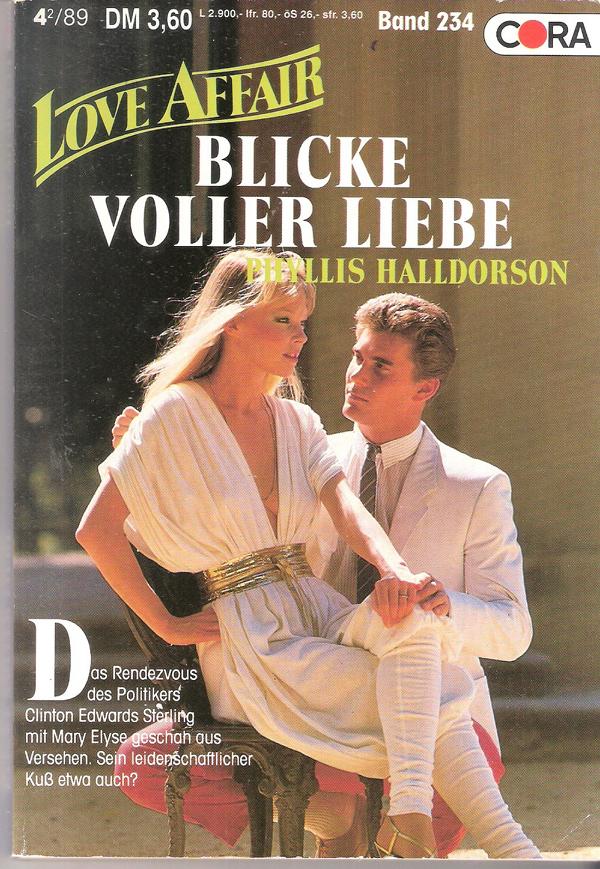 Love Affaire Nr. 234Titel: Blicke voller LiebeAutor: Phillis HalldorsonVerlag: Cora 1989Taschenbuch, 160 SeitenFormat: 12,5 x 18 x 1 cmGewicht: 115 gZustand: gebraucht, gut