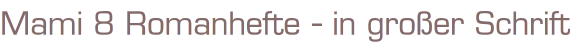 Mami 8 Romanhefte - in großer SchriftNr. 2512,2089,2091,2165,2252,2237,2377,2303.Zauberkreisverlag Rastatt8 Romanhefte á 62 SeitenFormat: 15,5x22,5x1,5cmZustand: gut, leichte Gebrauchsspuren