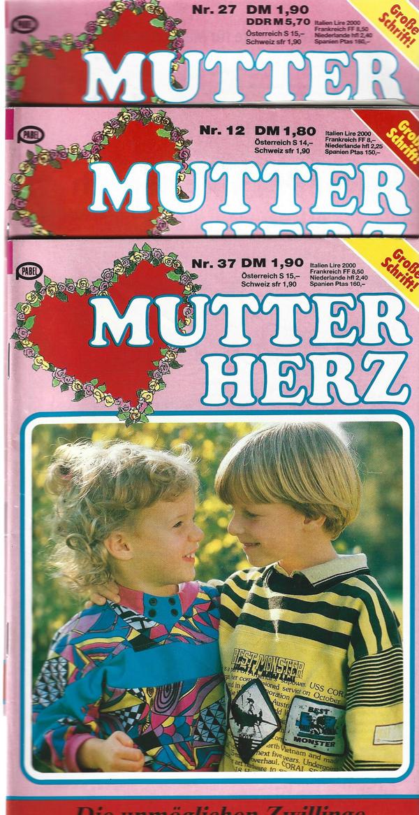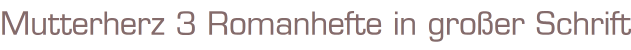 Mutterherz 3 Romanhefte in großer Schrift Nr. 37 Die unmöglichen Zwillinge Nr. 12 Sissy hat ein Geheimnis von Nr. 27 Das Kind mit der Engelsstimmevon Nina SchreiberVerlag: Pabel Verlag3 Stück Romanheft á 62 SeitenFormat: 15,5 x 22,5 cmZustand: gut
