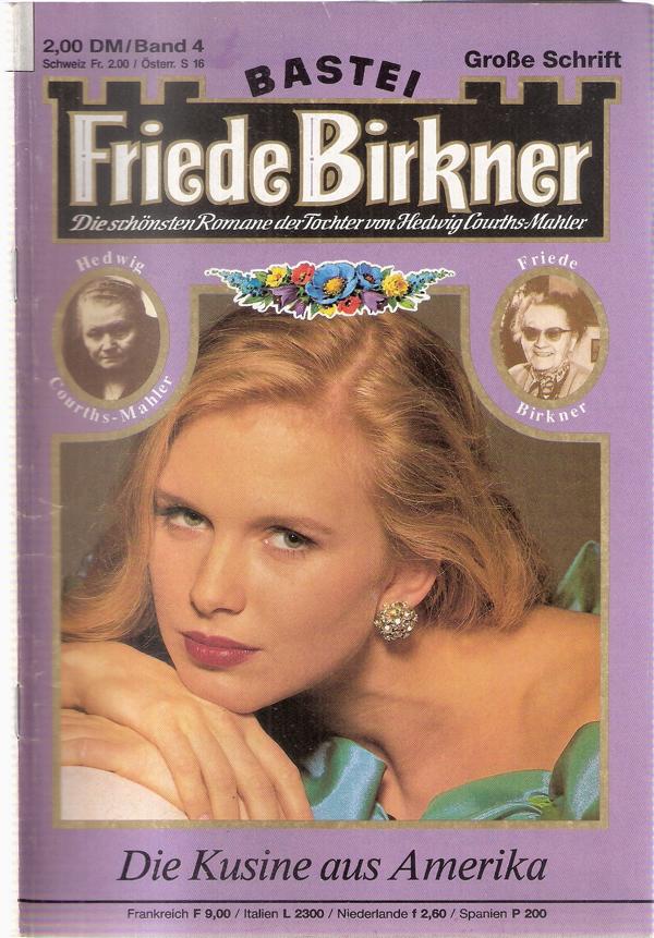 Friede Birkner Nr. 4Die schönsten Romane der Tochter vonHedwig Courths MahlerTitel: Die Kusine aus AmerikaVerlag: Bastei LübbeRomanhefte 65 SeitenFormat: 15,5 x 22,5 cmGewicht: 65 gZustand: gebraucht, gutRomanhefte - Liebesromane