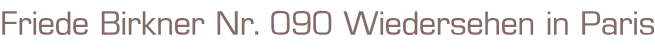 Friede Birkner Nr. 90Die schönsten Romane der Tochter vonHedwig Courths MahlerTitel: Wiedersehen in ParisVerlag: Bastei LübbeRomanhefte 65 SeitenFormat: 15,5 x 22,5 cmGewicht: 65 gZustand: gebraucht, gutRomanhefte - Liebesromane