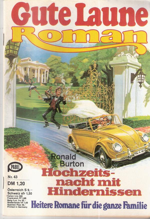 Gute Laune Roman Nr. 43Titel: Hochzeitsnacht mit HindernissenAutor: Ronald BurtonVerlag: Erich Pabel Verlag RastattRomanheft 66 SeitenFormat: 15 x 22 cmGewicht: 65 gZustand: sehr gut