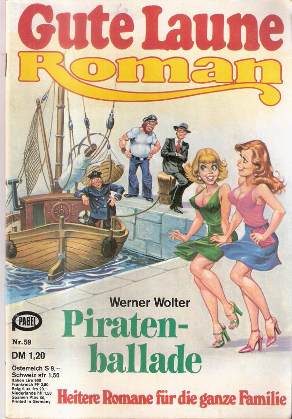 Gute Laune Roman Nr. 59Heitere Romane für die ganze FamilieTitel: PiratenballadeAutor: Werner WolterVerlag: Erich Pabel Verlag, RastattRomanheft 64 SeitenFormat: 15,5 cm x 22,5 cmGewicht: 71 gZustand: sehr gut